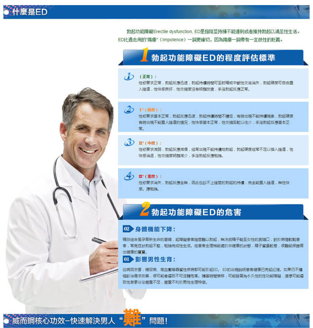 VIAGRA/威而鋼是一種治療勃起功能障礙的口服藥物。主要成分是西地那非,VIAGRA/威而鋼能促進陰莖的充血量以增強陰莖勃起硬度與持久時間。